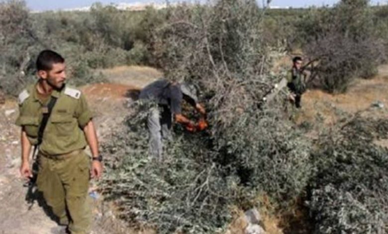مستوطنون يقتلعون عشرات أشجار الزيتون ويشقون طريقاً جنوبي طولكرم