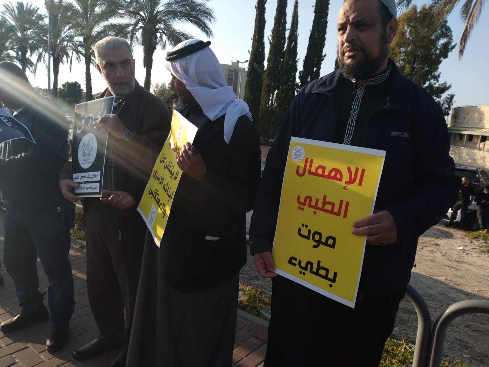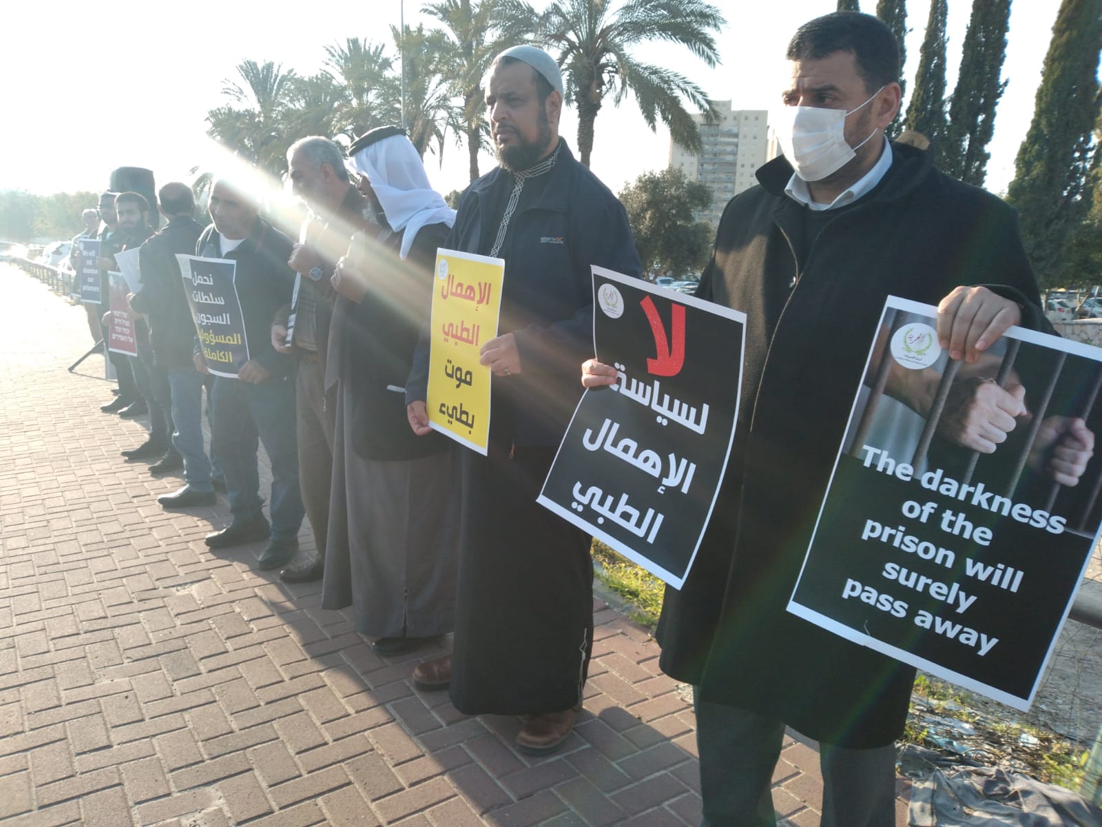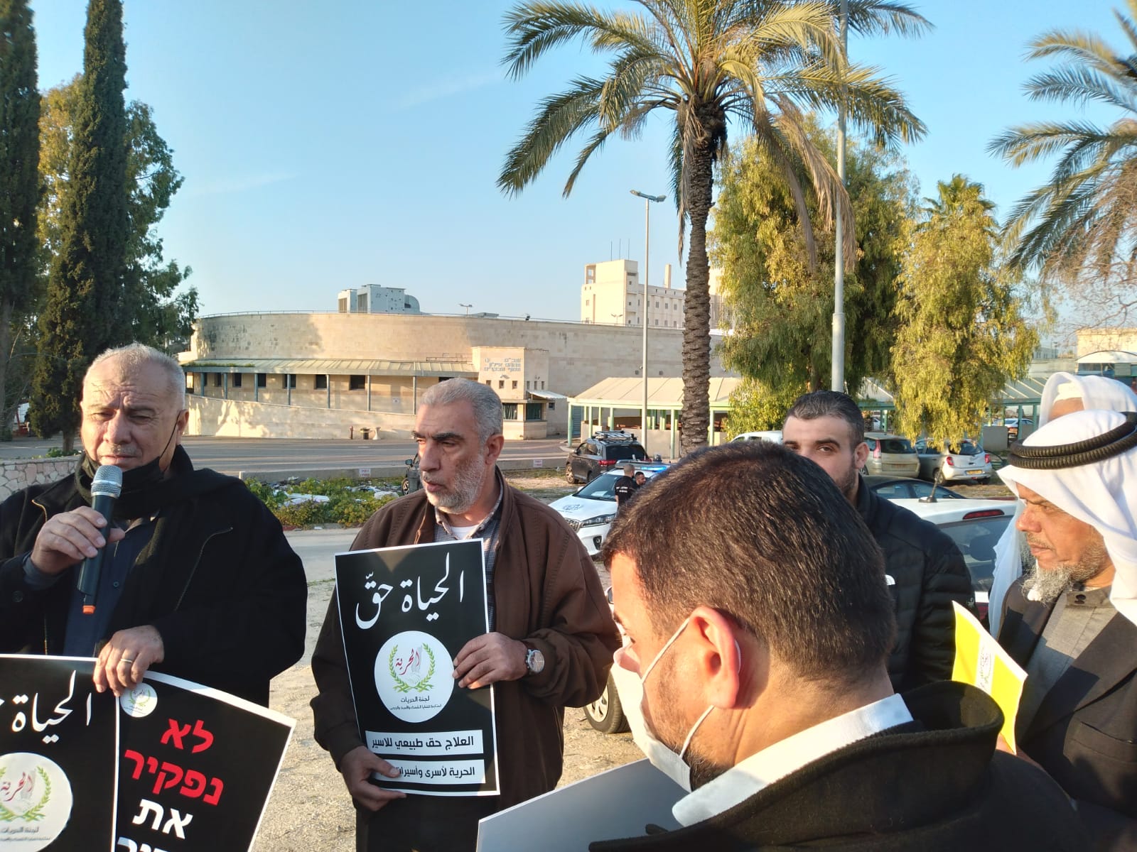 وأضاف الشيخ خطيب أن هذه الوقفة جاءت أيضا للانتصار لقضية الأسرى والمطالبة بنقلهم إلى العلاج والمستشفيات وليس إلى ما يسمى مستشفى سجن الرملة، لأنه “ليس مستشفى هذا زيادة في معاناة الأسير الذي يقبع فيما يسمى سجن الرملة”.