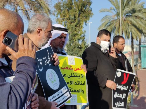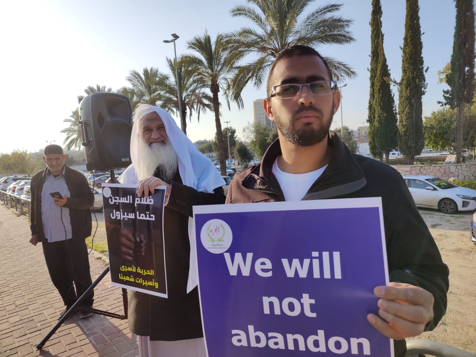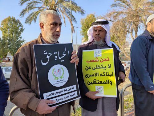 بدوره، قال الأستاذ محمد بركة؛ رئيس لجنة المتابعة العليا: “نقف هنا أمام سجن الرملة بمعتقلاته وفروعه المختلفة حيث يقبع المئات بل الآلاف من أبناء شعبنا في السجون وغيرها واليوم نخصص وقفتنا للأسرى المرضى الذين يعانون من الاضطهاد من ناحية ومن غياب العلاج ومن مجرد احتجازهم في هذه السجون”.