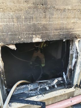 وأضاف أنه “جرى تخليص عالق قد فارق الحياة فيما تمكنت الطواقم من إخماد الحريق”.
