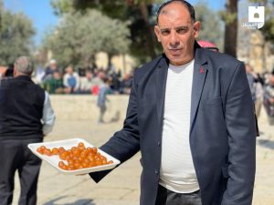 ووزع المرابطون في الأقصى التمر والحلويات والسكاكر على بعضهم البعض، كما لبس البعض الثوب الفلسطيني من نساء وطفلات.
