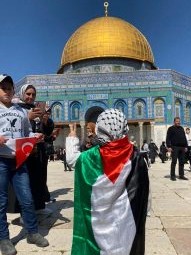 ورفع شبان مقدسيون العلم الفلسطيني في باحات المسجد الأقصى، كما توشّح الأطفال العلم والتقطوا صورًا لهم فيه عند صحن قبة الصخرة المشرفة.