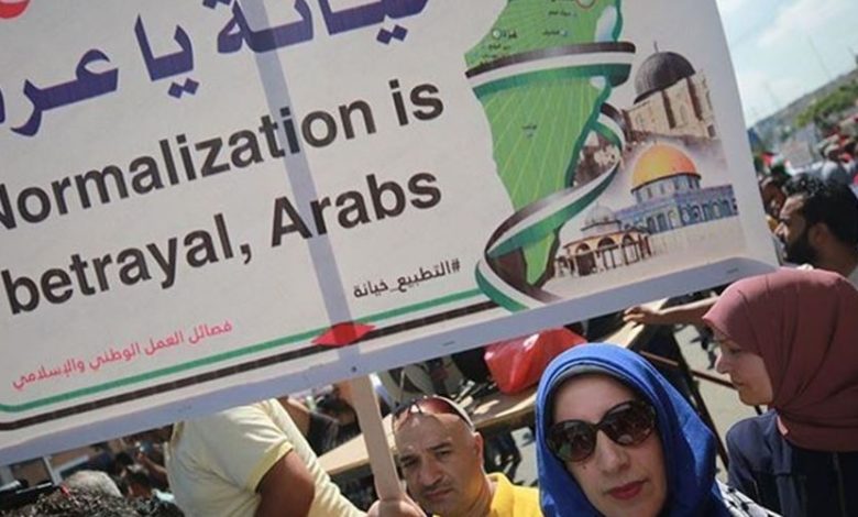 وقال البيان: إنَّ “الشعوب ستظل عصية على التطبيع، وستواصل نهج المقاومة والصمود والتجذر على الأرض الفلسطينية ضد ممارسات الكيان الاسرائيلي”.