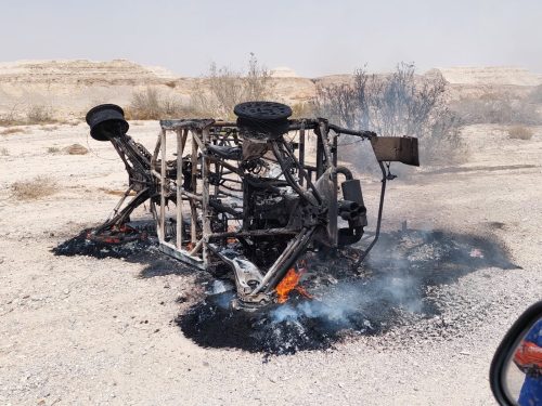 وفي بيان للناطق بلسان نجمة داوود الحمراء قال: “استلم مركز نجمة داوود الحمراء في منطقة النقب بلاغا حول انقلاب سيارة في منطقة مفتوحة قرب عين حتسفا وبعد ذلك اندلعت النيران فيه”.