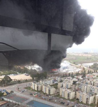 حريق كبير اندلع في مبنى قيد الإنشاء بشارع ‘شلوم هغليل’ ‘ في مدينة عكا”.