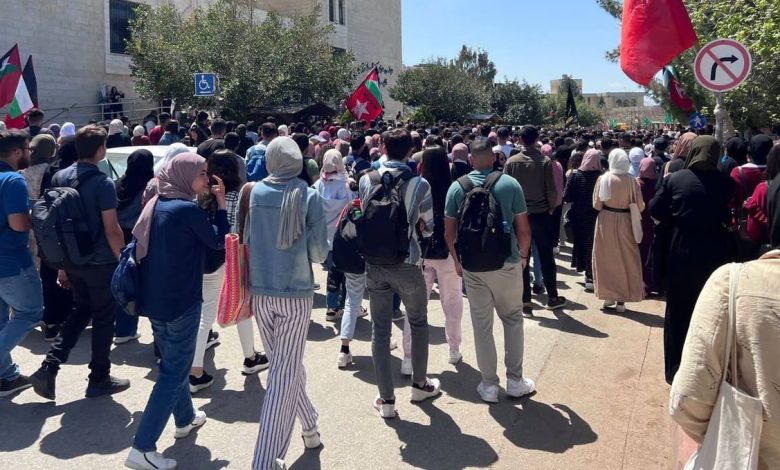مسيرة حاشدة في جامعة بيرزيت نصرةً لمخيم جنين