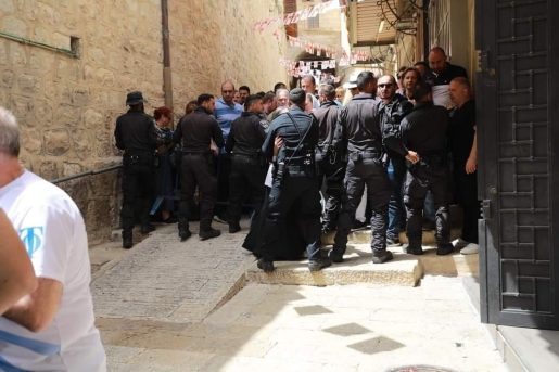 وذكر شهود عيان بأن قوات الاحتلال اعتدت على مسيحيين بينهم رهبان، في الأزقة المؤدية إلى كنيسة القيامة داخل البلدة القديمة. وأظهرت مقاطع فيديو متداولة محاولات شرطة الاحتلال لإعاقة المحتفلين والاعتداء عليهم لمنعهم من المضي في طريقهم.