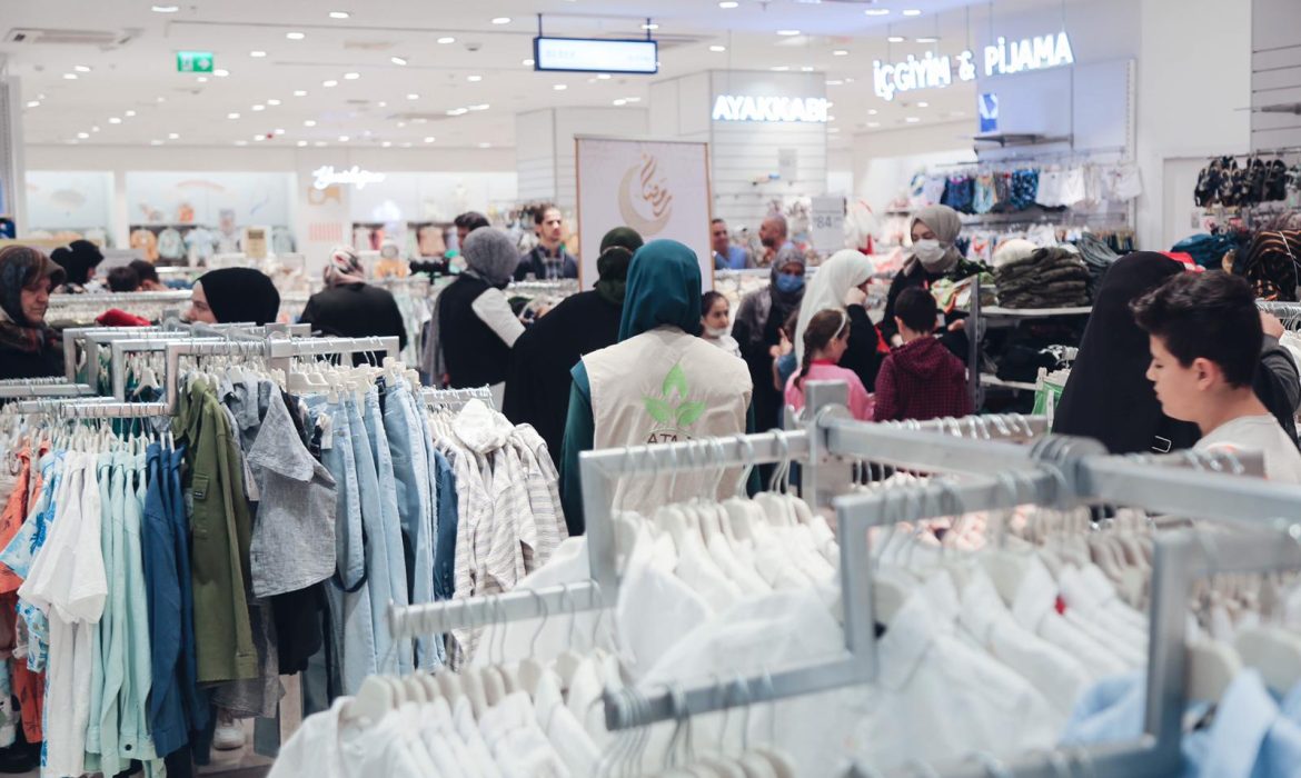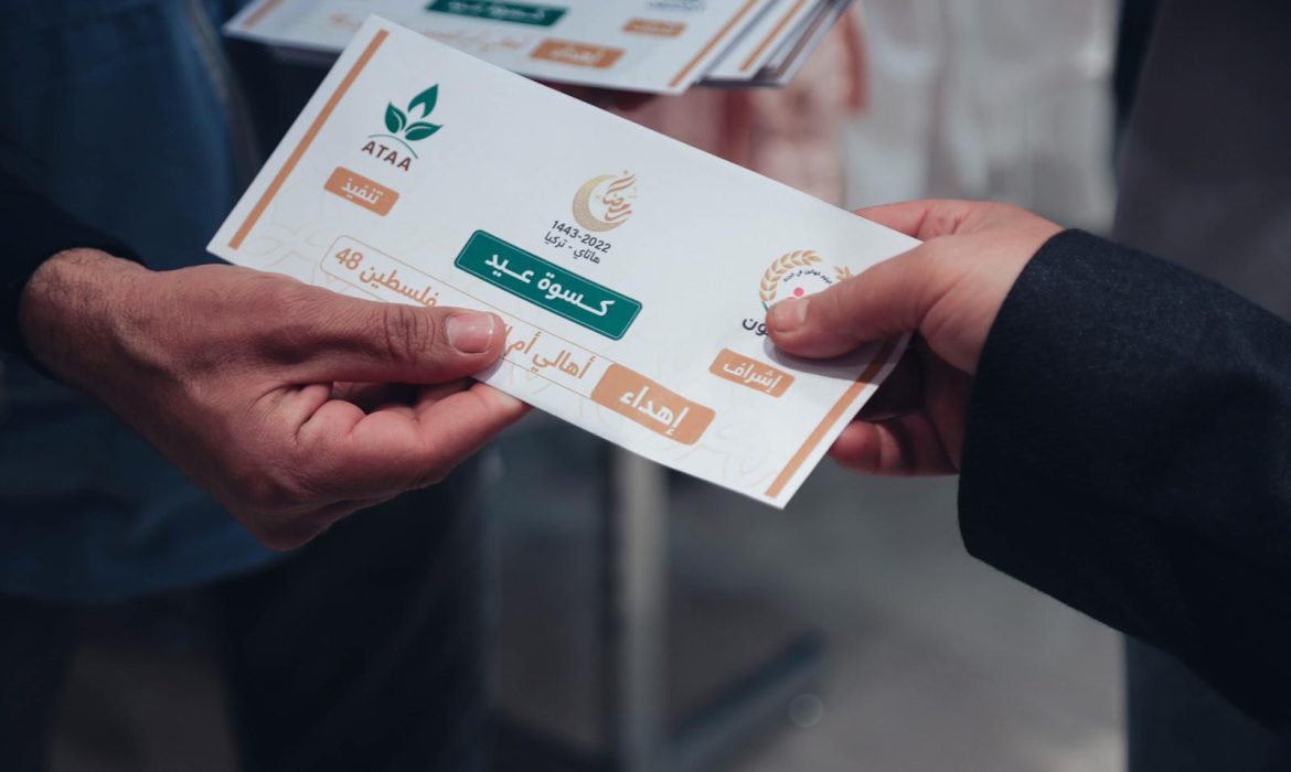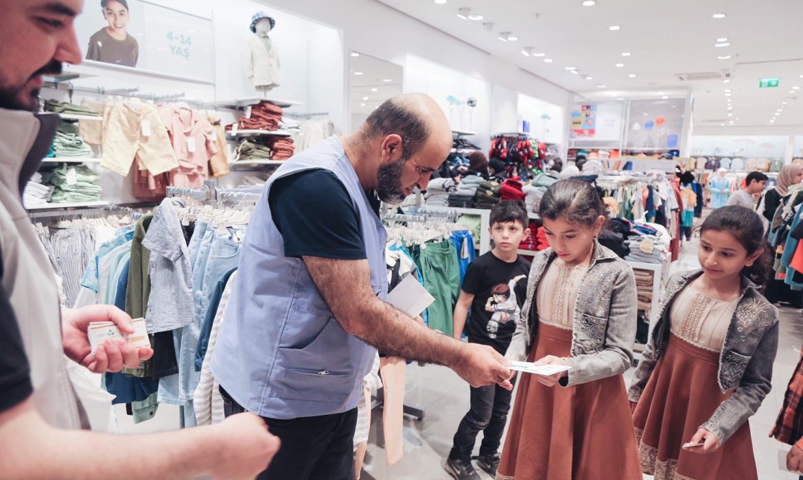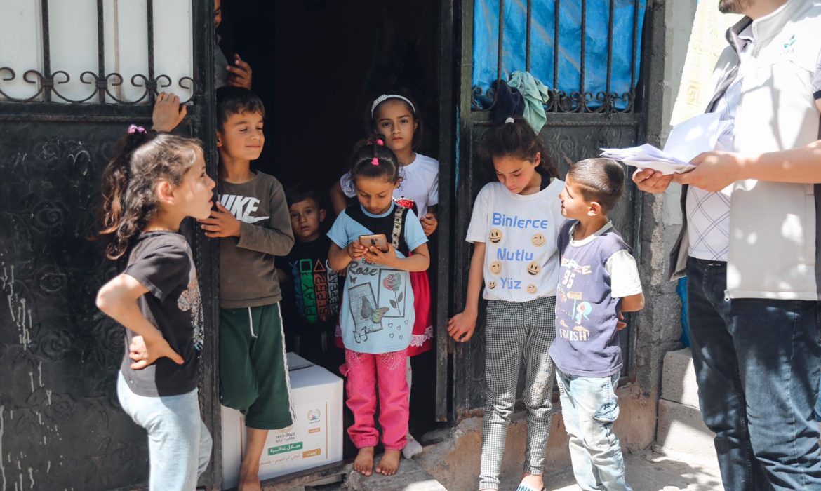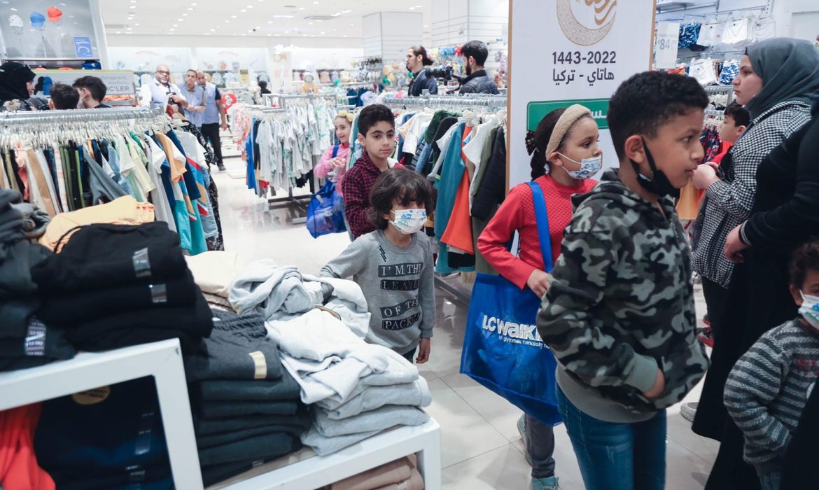 تبرعات مالية ومساعدات تموينية وقسائم شراء وكسوة عيد لنحو 200 عائلة سورية