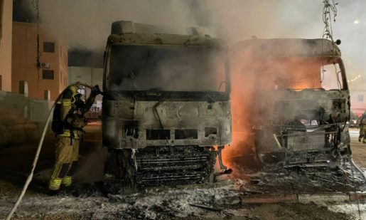 ووفقا للشبهات التي تم رصدها فإنه، على ما يبدو، يدور الحديث عن جناة مجهولين أحرقوا الشاحنتين عمدا، الساعة الثانية والنصف فجرا.