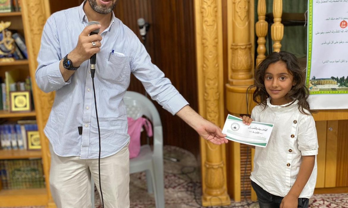 وفي نهاية الاحتفال كان توزيع الجوائز النّقديّة على الفائزين والتي تبرّع بها أهل الخير من روّاد المسجد، وقد عقّب المشاركون في الاحتفال عن فرحتهم وبهجتم بفقرات الاحتفال، وبتواجد أبنائهم في المشروع.
