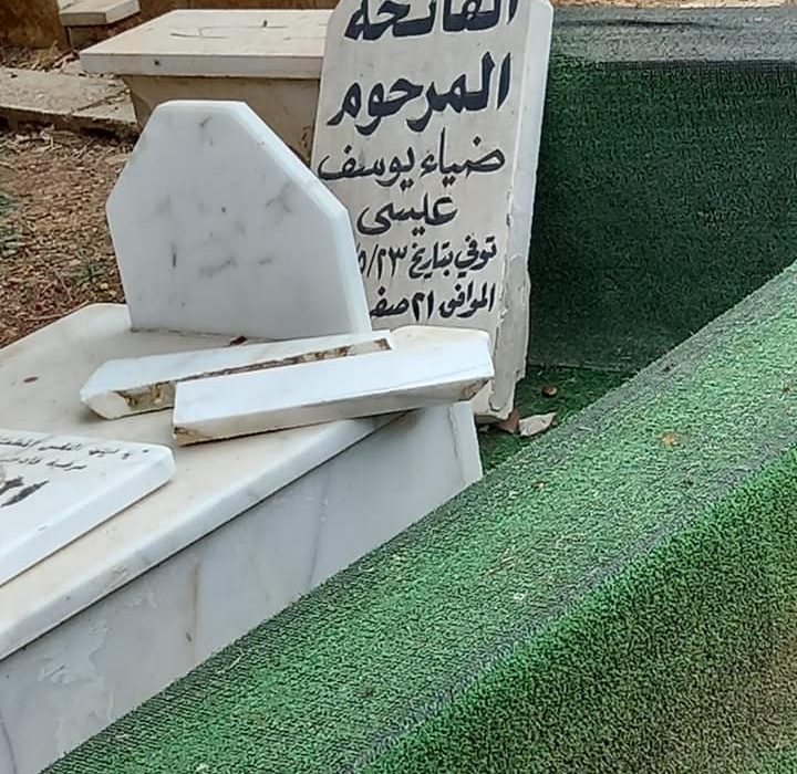واستهجن الحزب هذا الاعتداء، وأكد أنه “نرى فيه، عدا أنه تعدٍ على كرامة الأموات، مسًّا بمشاعر الأحياء أيضا وتطاولا فضا على مكان مقدسٍ، لا يجوز في حالٍ من الأحوال تدنيسه”.