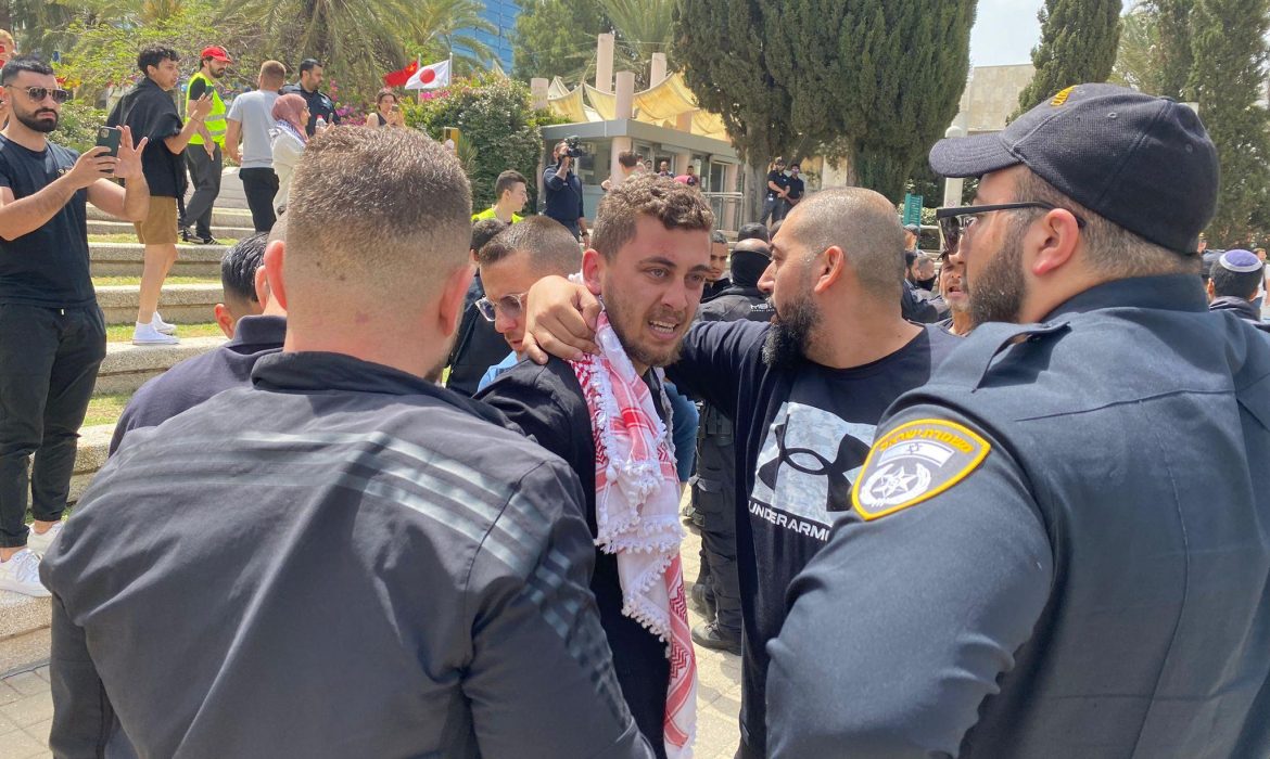 وزعمت الشرطة أن الطالب جبارين اعتدى على شرطي، خلال التحضير لبدء برنامج مراسم إحياء ذكرى النكبة الفلسطينية في جامعة تل أبيب، أول من أمس الأحد.