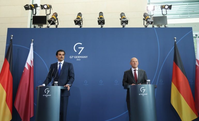 بحث أمير دولة قطر الشيخ تميم بن حمد آل ثاني سبل حل الملف النووي الإيراني سلميا خلال لقائه أمس الجمعة في برلين مع المستشار الألماني أولاف شولتز.