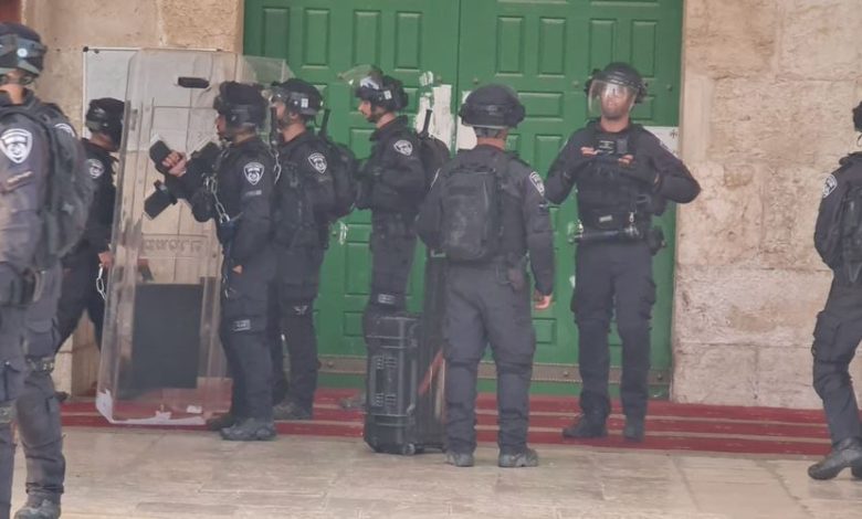 وأفادت مصادر محلية أن قوات الاحتلال اقتحمت في وقت مبكر باحات الأقصى، وانتشرت في المكان، قبل أن تقدم على إغلاق باب الجنائز في المصلى القبلي بالسلاسل الحديدية.