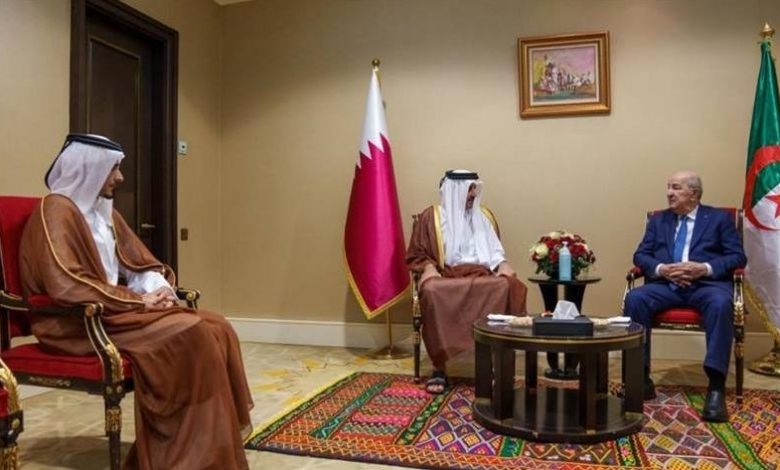 بحث أمير دولة قطر الشيخ تميم بن حمد آل ثاني، مع الرئيس الجزائري عبد المجيد تبون، العلاقات الثنائية وقضايا ذات اهتمام مشترك.