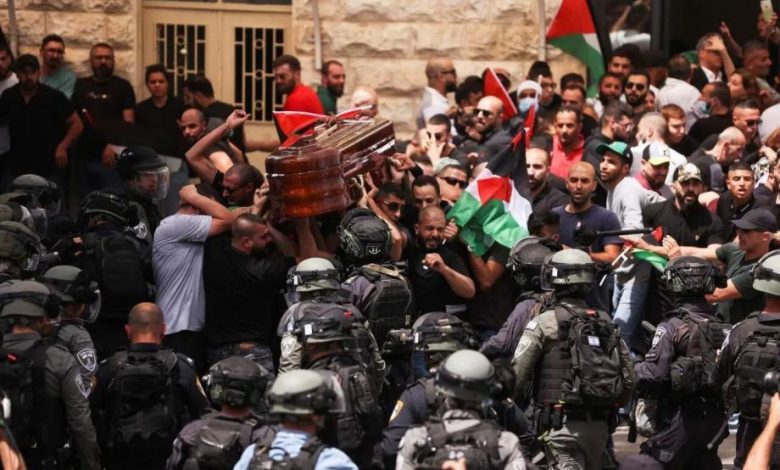 ورفض مبررات الاحتلال ودوافعه للاعتداء على المشيعين في جنازة شيرين أبو عاقلة، 13 مايو/ أيار الماضي، بزعم رفع العلم الفلسطيني في القدس المحتلة، وكذلك في جنازة الصحفية غفران وراسنة التي لم يكن فيها أي أعلام.