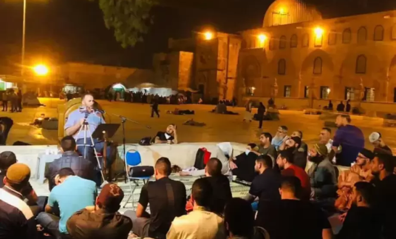 في ثالث ليالي الاعتكاف.. حلقات لتلاوة القرآن وأداء صلاة القيام في”الأقصى”