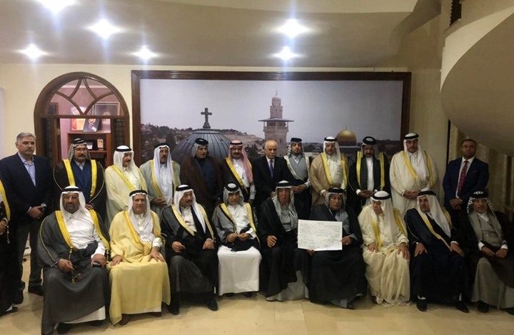 وأضاف الموقع أن السفير الفلسطيني، أحمد عقل وضع شيوخ العشائر في صورة تمر به القضية الفلسطينية، متوقعا أن تبادر عشائر العراق الأخرى التي لم تكن حاضرة إلى التوقيع على وثيقة عهد فلسطين لتشمل كامل ربوع العراق.