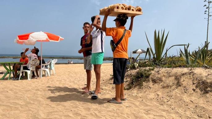 ولم تمنع أشعة الشمس اللاهبة أبو الخير، والذي بدا مُرهقًا، وقد تصبب العرق من جبينه ووجهه وهو يتجول ذهابا وإيابا، فيما لا يجد خيارًا آخر، سوى استغلال موسم الصيف، لبيع المُسليات للمصطافين على شاطئ البحر.