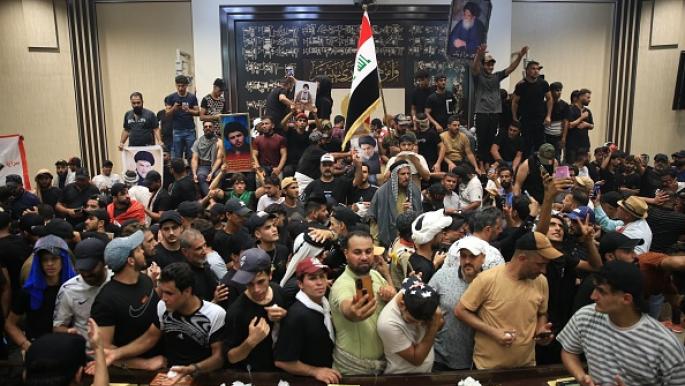 ومنذ 30 يوليو/ تموز الماضي، يواصل أتباع التيار الصدري اعتصامهم داخل المنطقة الخضراء ببغداد رفضا لترشيح تحالف الإطار التنسيقي محمد شياع السوداني لمنصب رئاسة الوزراء، وللمطالبة بحل مجلس النواب وإجراء انتخابات مبكرة.