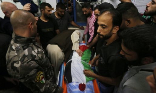 جثمان الشهيد علي حرب لدى إخراجه من مستشفى سلفيت