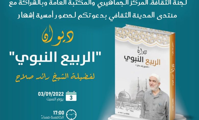 غدا السبت.. إشهار ديوان “الربيع النبوي” للشيخ رائد صلاح في المكتبة العامة بمدينة أم الفحم