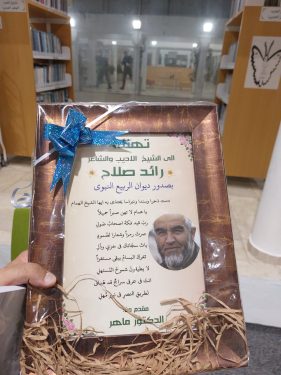 واختتم الحفل بتوقيع الشيخ رائد صلاح على ديوانه الشعري “الربيع النبوي” ومباركة المشاركين للشيخ على ديوانه.