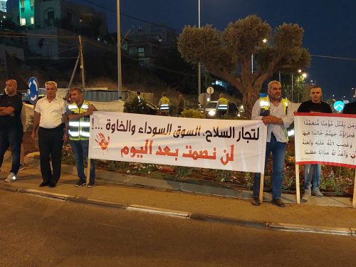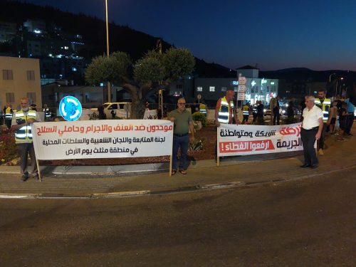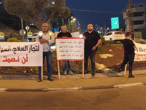 ورفع المشاركون في الوقفة الاحتجاجية لافتات كتب على بعض منها “الشرطة شريكة ومتواطئة مع الجريمة.. ارفعوا الغطاء”، “موحدون ضد العنف والإجرام وحاملي السلاح”، “لتجار السلاح والسوق السوداء والخاوة.. لن نصمت بعد اليوم”.
