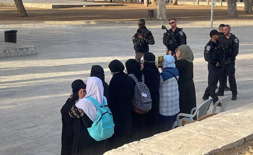 وفرضت شرطة الاحتلال قيودا مشددة على دخول الفلسطينيين للمسجد الأقصى، ودققت في هوياتهم واحتجزت بعضها عند بواباته الخارجية.