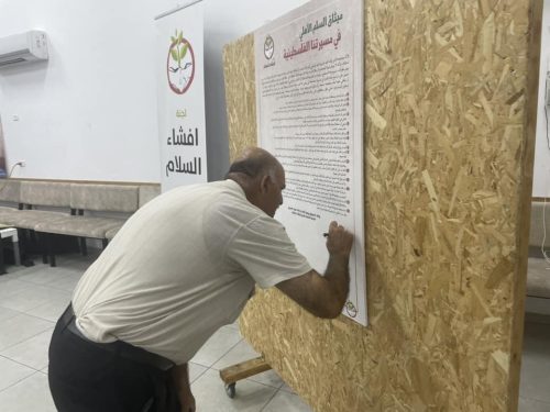 وفي نهاية اللقاء وقّع الحضور على ميثاق السلم الأهلي، كما تخلل اللقاء عرض لرسومات تحذّر من آفة العنف والجريمة وتدعو إلى السلم الأهلي والمحبة.