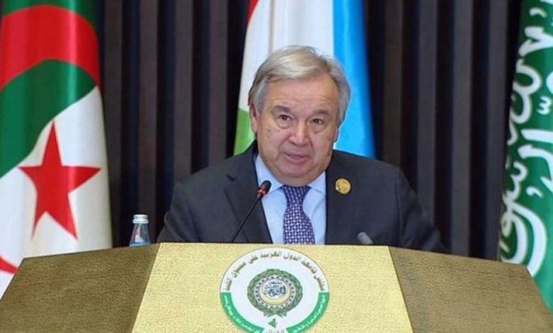 وأضاف، خلال كلمته أمام القمة العربية رقم 31، الثلاثاء في الجزائر: “موقف الأمم المتحدة من قضية فلسطين واضح وهو ضرورة إنهاء الاحتلال الإسرائيلي”.