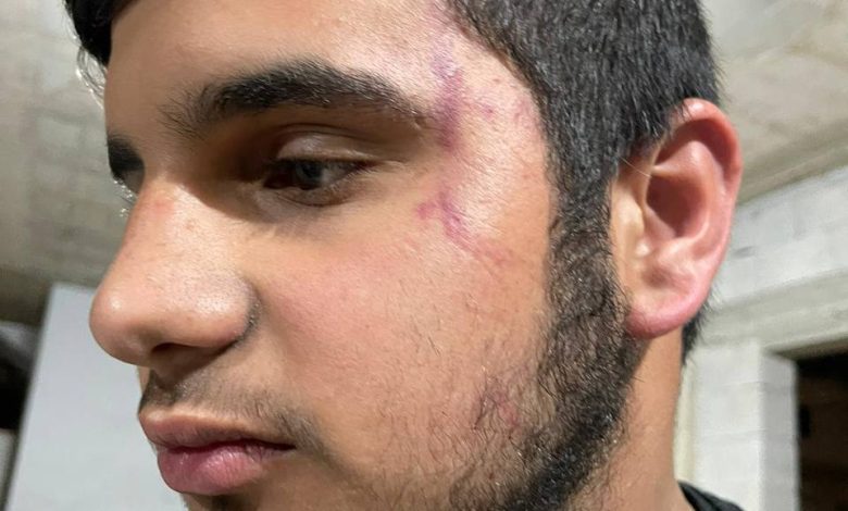 وأوضح “أخذوا ابني إلى مركز الشرطة الإسرائيلية في عارة بحجة أنه جادلهم، وقاموا بالاستهزاء به وبالضحك عليه وهو في داخل مركبة الشرطة، وضربوه ضربًا عنيفًا حتى تورم وجهه”.