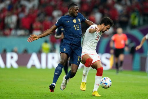 بالمقابل، دخل المنتخب الفرنسي اللقاء بتشكيلة من العناصر الاحتياطية بعد ضمان تأهله إلى الدور القادم، واكتفى بأداء متحفظ لم يُقلق الدفاع التونسي سوى في مناسبة وحيدة بتسديدة من كينغسلي كومان.