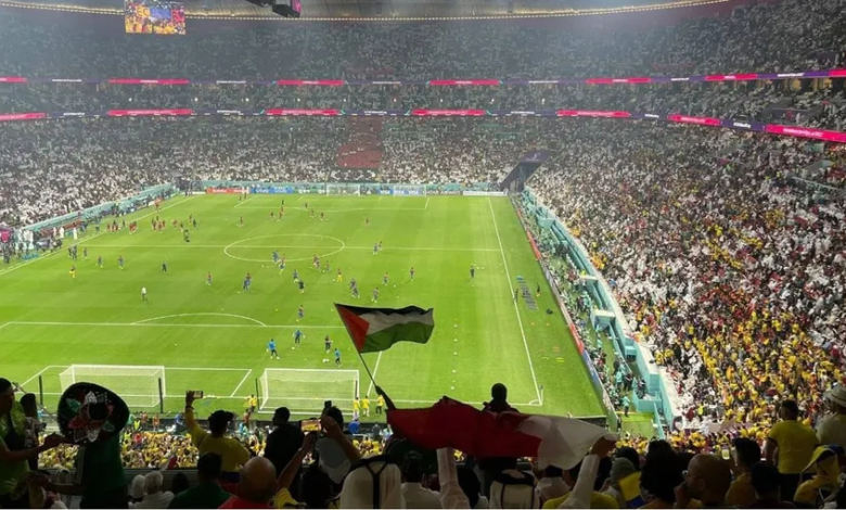 عبر مشجعون إنجليز عن تضامنهم مع الشعب الفلسطيني، بعبارة “فلسطين حرة”، وذلك خلال حضورهم مباراة إنجلترا والسنغال.