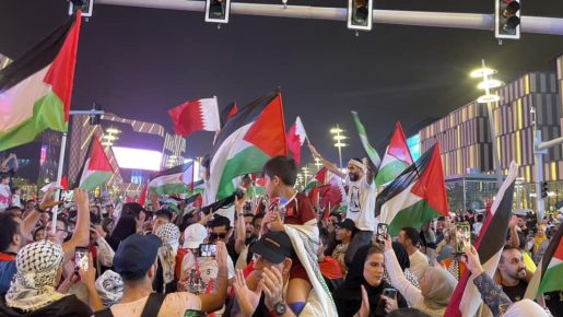 ويقول الكاتب إن المباريات قصفتها المظاهر السياسية من كل الجبهات إلا أن القضية الفلسطينية كانت الفكرة المهيمنة. ففي الوقت الذي منعت فيه السلطات المؤيدين للمثليين الذين ارتدوا شعارات “أل جي بي تي” من دخول الملاعب أو حملة الرايات المعادية للنظام الإيراني، ظل العلم الفلسطيني حاضرا في ملاعب كأس العالم، مهما كان الفريق الذي يلعب. وتم رفع راية ” الحرية لفلسطين” في منصة على الأقل، فيما جرى مشجع تونسي لف نفسه بالعلم الفلسطيني نحو الملعب قبل أن يخرجه الحرس.