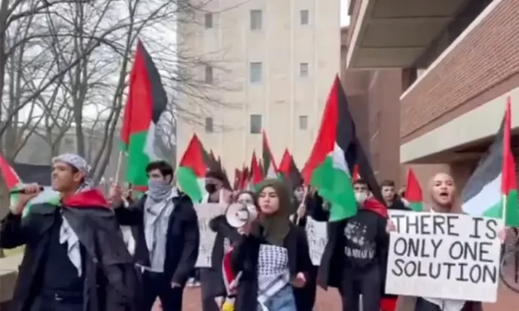 شارك العشرات من طلبة جامعة ولاية ميشيغان في مظاهرة ضد الاحتلال الإسرائيلي وهم يهتفون “انتفاضة انتفاضة.. عاشت الانتفاضة”، مما أثار”هستيريا” في وسائل الإعلام الأمريكية الموالية لإسرائيل، بما في ذلك شبكة “فوكس نيوز” اليمينية.