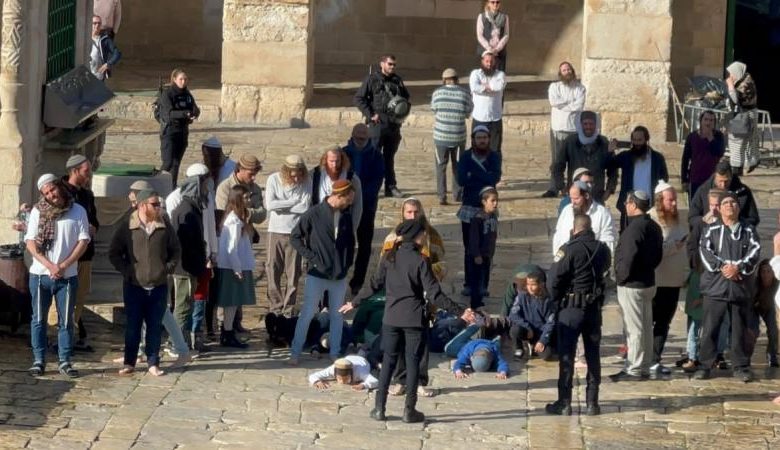 ورفع المستوطنون علم الاحتلال خلال اقتحامهم للمسجد الأقصى، بحماية قوات الاحتلال، ورددوا أناشيدهم الاستيطانية، وأدوا ما يسمى السجود الملحمي الجماعي داخل باحات المسجد الأقصى.
