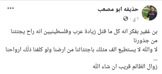 ويشار إلى أن الشرطة الإسرائيلية أعلنت بأنها اعتقلت شابًا فلسطينيًا من مدينة رهط بزعم تهديده لبن غفير خلال منشورات على فيسبوك.