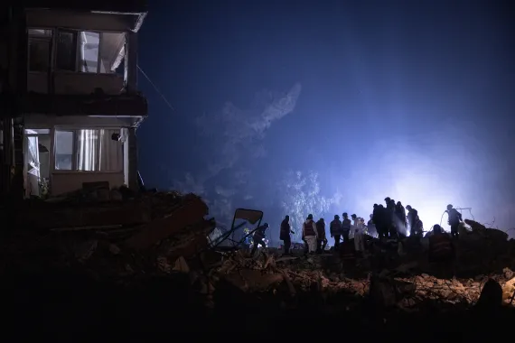 وفجر 6 فبراير/شباط الجاري، ضرب زلزال جنوب تركيا وشمال سوريا بلغت قوته 7.7 درجات، أعقبه آخر بعد ساعات بقوة 7.6 درجات ومئات الهزات الارتدادية العنيفة، مما خلّف خسائر كبيرة في الأرواح والممتلكات بالبلدين.