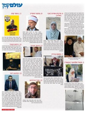 وكانت قد نشرت في الماضي القريب صحيفة “هكول هيهودي” (الصوت اليهودي)، لائحة بأسماء تزعم أنها “جهات تساهم في التحريض”، والتي تدفع فلسطينيين بالمشاركة بأعمال مقاومة، ونشرت في اليومين الأخيرين، أسماء 30 شخصية مقدسية، خاصة الشيخ عكرمة صبري، ومن ضمنهم مفتى فلسطين الشيخ محمد حسين، والمطران عطا الله حنا، ورئيس لجنة المتابعة العليا، محمد بركة، والشيخ رائد صلاح، والشيخ كمال خطيب والشيخ حسام أبو ليل.