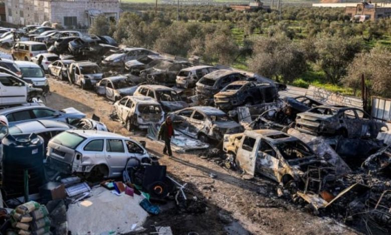 يقف المواطن أحمد الخالدي من بلدة حوارة شرق مدينة نابلس، أمام مركبته التي أحرقها مستوطنون متطرفون، والغضب يملأ وجهه من مجازر المستوطنين المتكررة بحق أهالي البلدة.
