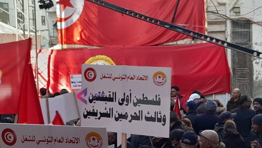 تظاهر عدد النقابيين التابعين للاتحاد العام التونسي للشغل السبت في العاصمة احتجاجا ضد سياسات السلطة والأوضاع الاجتماعية، ورفضا لضغوط الرئيس قيس سعيّد ضد المنظمة، الذي حذر من مشاركة أجانب في احتجاجات السبت.
