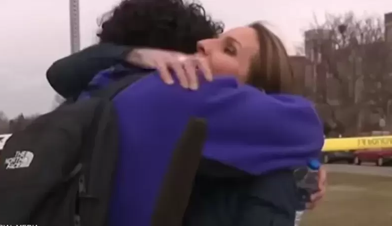 وثق مقطع فيديو مشهدا مؤثرا للقاء مذيعة كانت تقدم تقريرا مباشرا عن حادث إطلاق نار في مدرسة ثانوية بدنفر بالولايات المتحدة قبل أيام، بابنها الذي تصادف مغادرته للمبنى مع بث التقرير.
