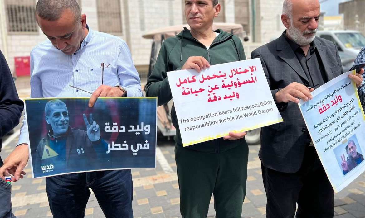 وجاءت الوقفة تلبية لنداء من الأسرى المحررين، وذلك نصرةً للأسير دقة الذي يعاني من سياسة الإهمال والموت البطيء بعد تشخيص إصابته بمرض السرطان حيث شخّص الأطباء في كانون الأول/ ديسمبر 2022 إصابته بسرطان التليف النقوي، وهو سرطان نادر يصيب النخاع العظمي.