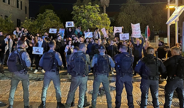 واعتقلت الشرطة التي دفعت بقوات معززة إلى مكان التظاهرة، شابة لرفضها إنزال العلم الفلسطيني.