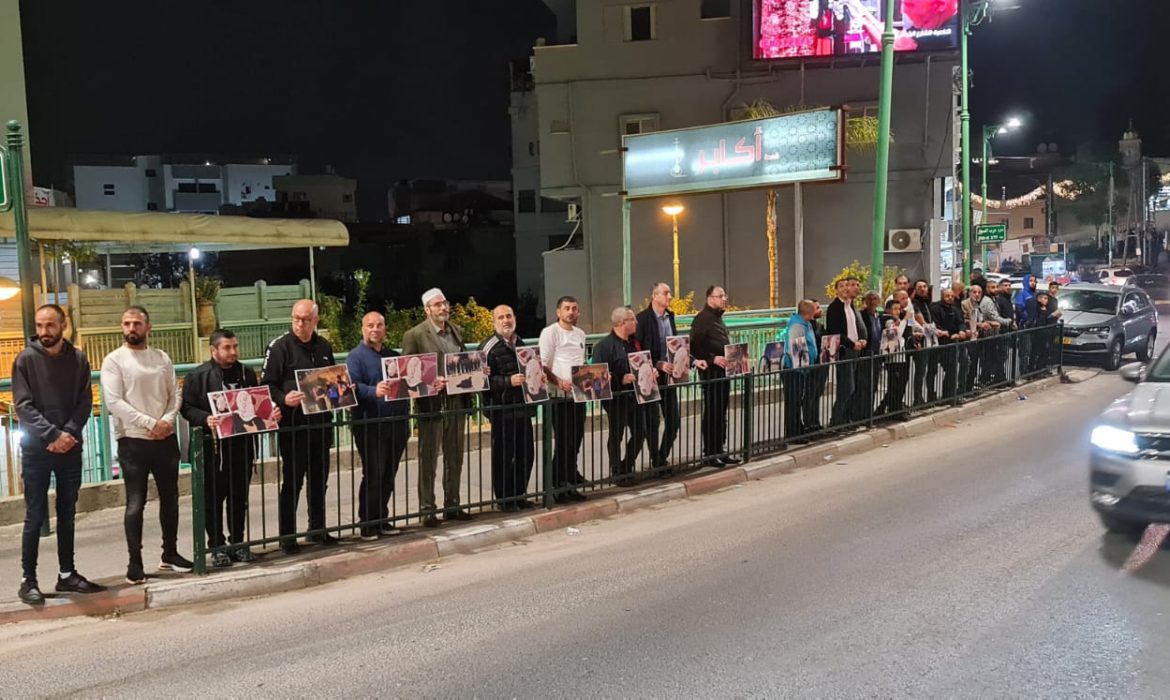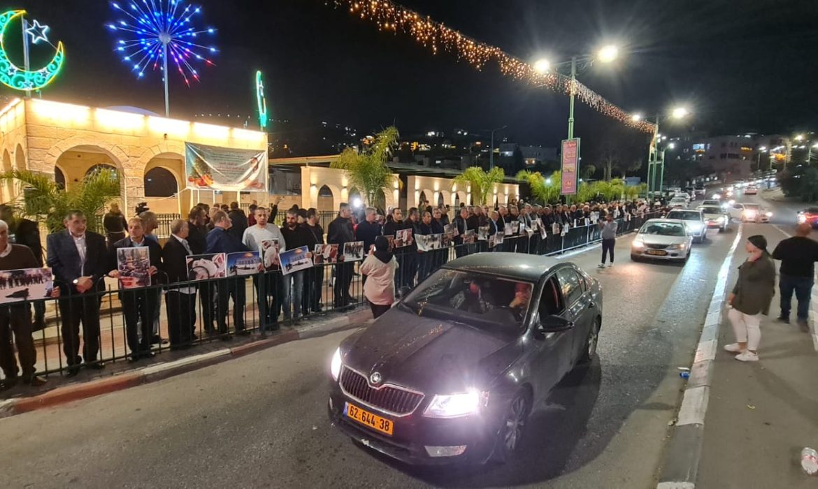 ووقف عشرات المتظاهرين على طرفي شارع 77 عند ساحة العين بكفر كنا، ورددوا شعارات “بالروح بالدم نفديك يا أقصى” وحملوا صورا للمسجد الأقصى والأعلام الفلسطينية ولافتات منددة بانتهاك حرمة المسجد الأقصى والاعتداء على المعتكفين فيه.