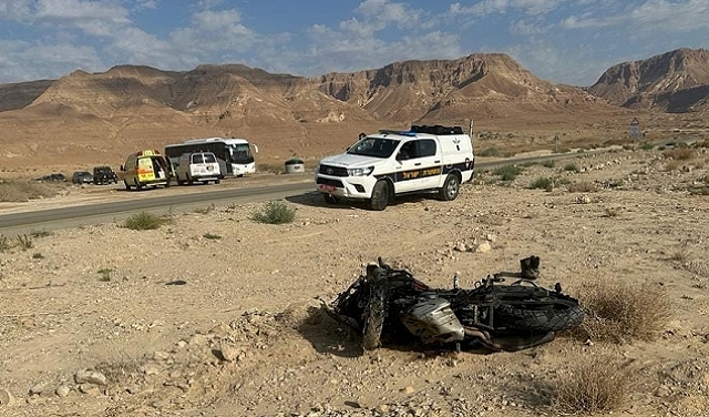 وأفاد الناطق بلسان “نجمة داود الحمراء” بأن “مركز الاستعلامات 101 في منطقة النقب تلقى، الساعة 06:59، بلاغا عن انزلاق دراجة نارية على شارع 90 جنوبي البلاد، ووصلت طواقم طبية إلى المكان وقدمت العلاجات الأولية لشاب (40 عاما) وصفت حالته بالخطيرة، وهو يعاني إصابة بالرأس وفاقد للوعي وتحت التخدير والتنفس الاصطناعي”.