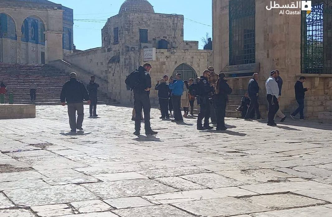 وقام المستوطنون بأداء طقوسٍ تلمودية في ساحات المسجد المبارك.