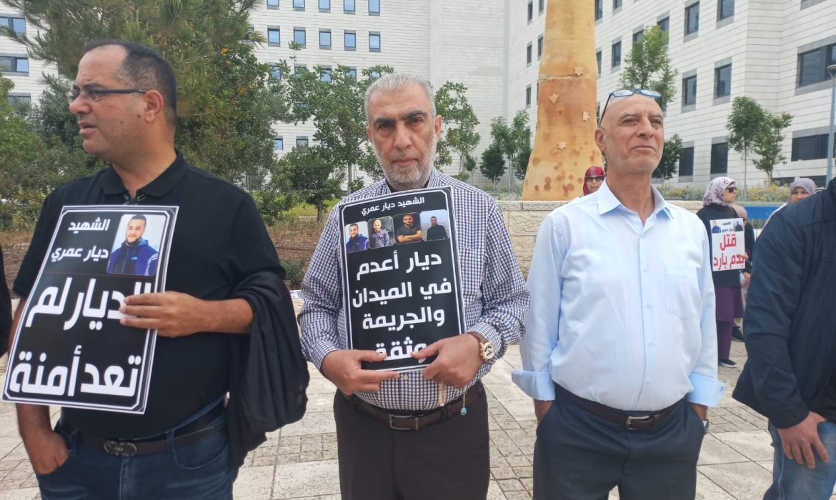من جانبه، أشاد السيد محمد بركة رئيس لجنة المتابعة العليا للجماهير العربية، بالمشاركين في الوقفة، مؤكدا إسناد عائلة الشهيد عمري حتى ينال القاتل عقابه المستحق، ودعا بركة الحضور قراءة الفاتحة على روح الشهيد ديار عمري.