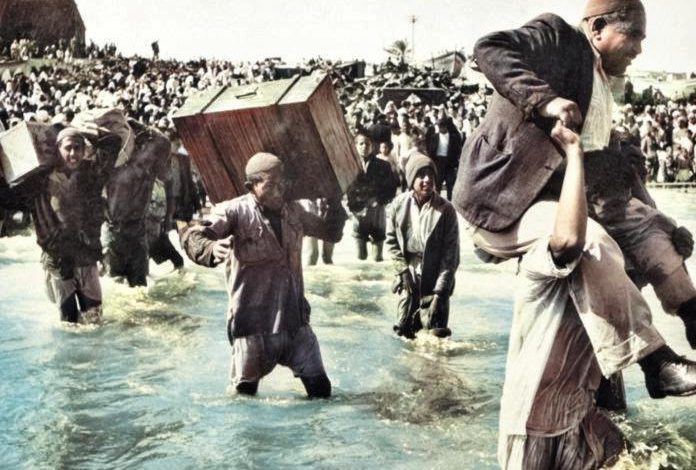 ـ عام 1948: سيطر الصهاينة على عشرات المدن والقرى الفلسطينية وطردوا سكانها الفلسطينيين من بيوتهم بالقوة، وذلك تحت أعين سلطات الانتداب البريطاني.